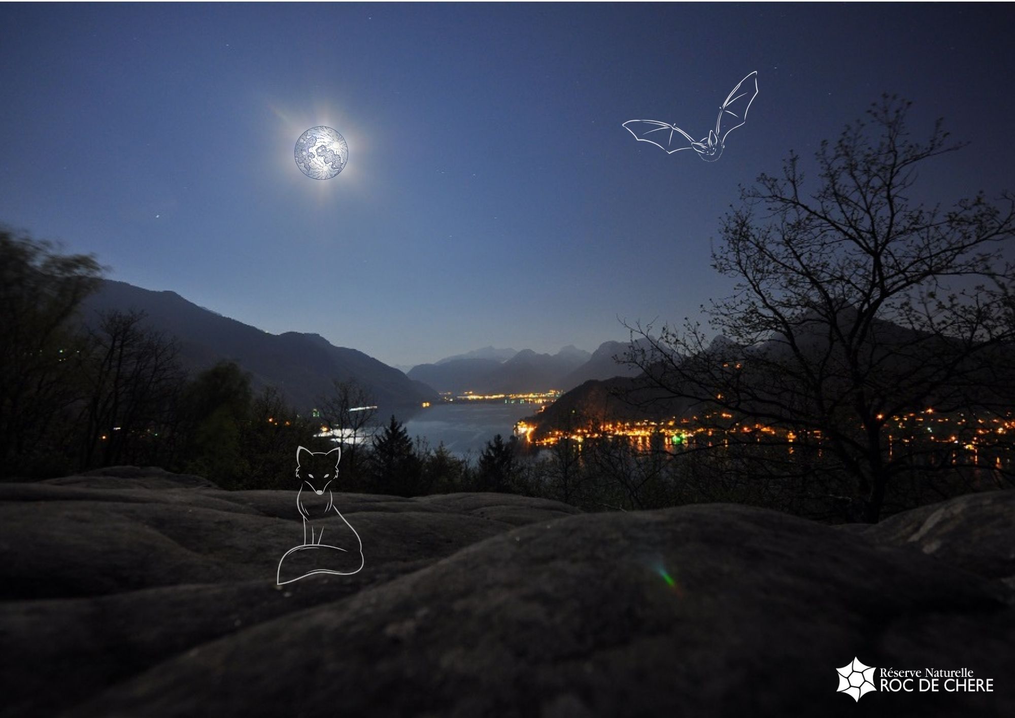 Non, vous n’allez pas rencontrer de lucioles et de vampires ! Mais on pourra certainement profiter du ballet nocturne des chauves-souris en chasse, et peut être observer des vers luisants. La tombée de la nuit au Roc de Chère, c’est aussi le calme de la forêt et les lumières sur le lac.