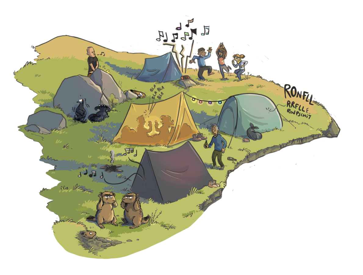 En randonnant et bivouaquant dans un espace naturel protégé, vous pénétrez dans un monde fragile. Les animaux font face à des conditions de vie éprouvantes de haute montagne. Le bruit et le dérangement produits par les humains sont vécus comme autant d’alertes qui déclenchent potentiellement des dépenses énergétiques supplémentaires pour fuir. Le dérangement entraîne également des échecs de reproduction notamment par l’abandon de couvées ou de nichées. Ne serait-ce qu’une voix, un passage, une musique peut menacer la survie d’individus (oiseaux, mammifères).
