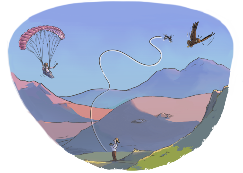 Que ce soit en parapente, avec un drone ou autre aéronef, le survol des réserves naturelles perturbent la faune sauvage. Dérangement majeur pour la faune, ils génèrent du stress pour les animaux qui les identifient à des prédateurs aériens.