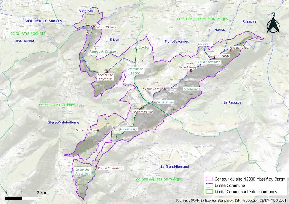Le site Natura 2000 du Massif du Bargy, du nom du massif montagneux qui le compose est situé au cœur de la Haute Savoie. Il s’étend sur une surface de 3 847 hectares répartis sur 8 communes (Bonneville, Brison, Glières-Val-de-Borne, Le Grand Bornand, Le Reposoir, Marnaz, Mont-Saxonnex, Scionzier)