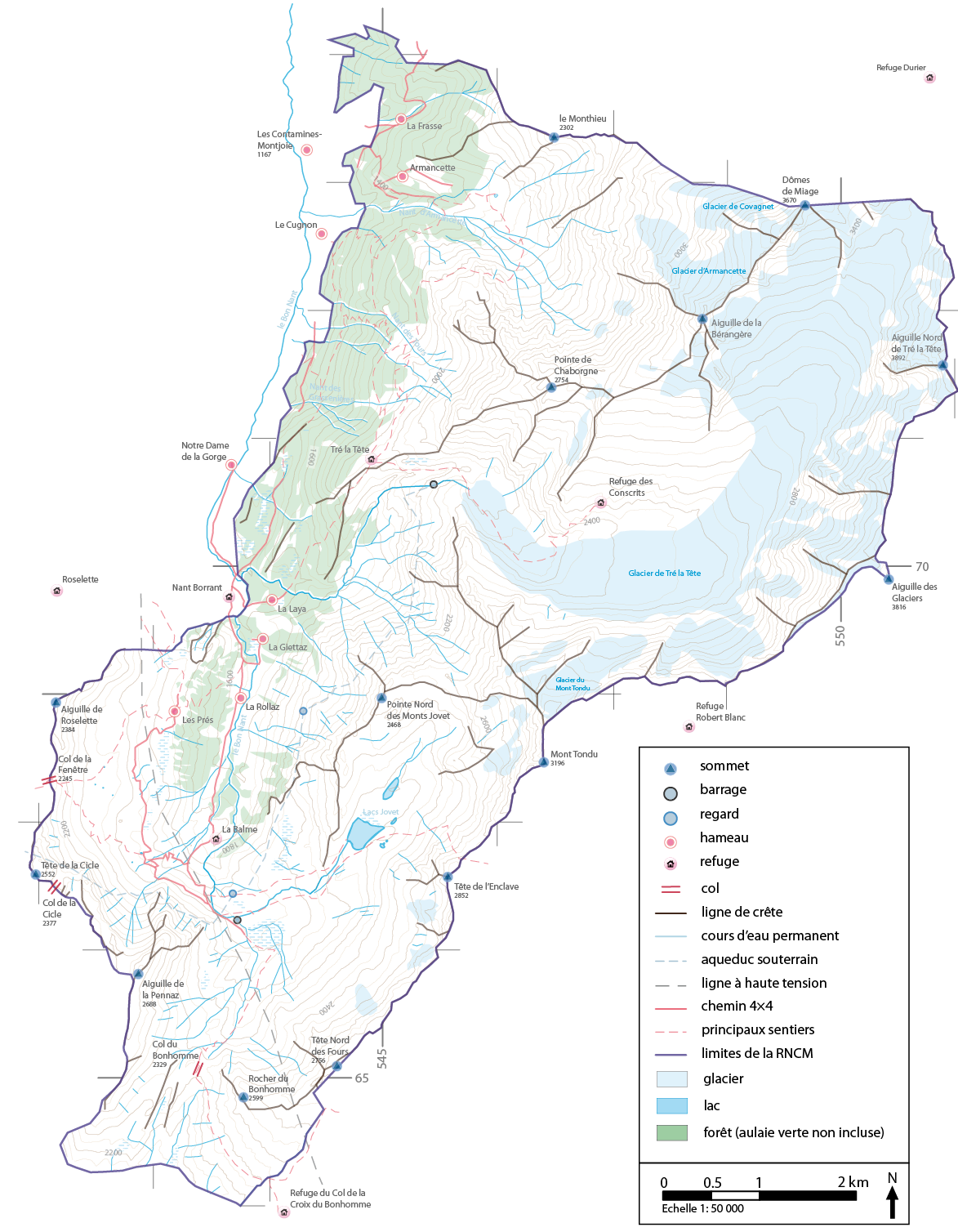La Réserve Naturelle des Contamines Montjoie, qui occupe tout le Sud-Est du Val Montjoie dans le département de la Haute-Savoie (France), est un site exceptionnel à plusieurs titres. Tout d’abord, c’est une des principales aires de protection dans le massif du Mont-Blanc. La RNCM, créée en 1979 et gérée par ASTERS, s’étend sur 55 km2, soit plus du tiers de la surface du Val Montjoie. Sur les 296 réserves naturelles françaises en 2013, elle est la plus élevée et celle jouissant de la plus grande extension verticale puisqu’elle s’étend de 1100 à 3892 mètres d’altitude. L’altitude moyenne est de 2338 m pour une pente moyenne de 30.9°. La RNCM est donc un espace de haute montagne.